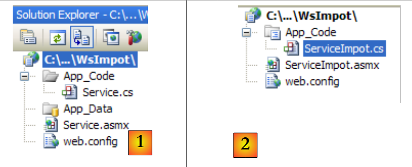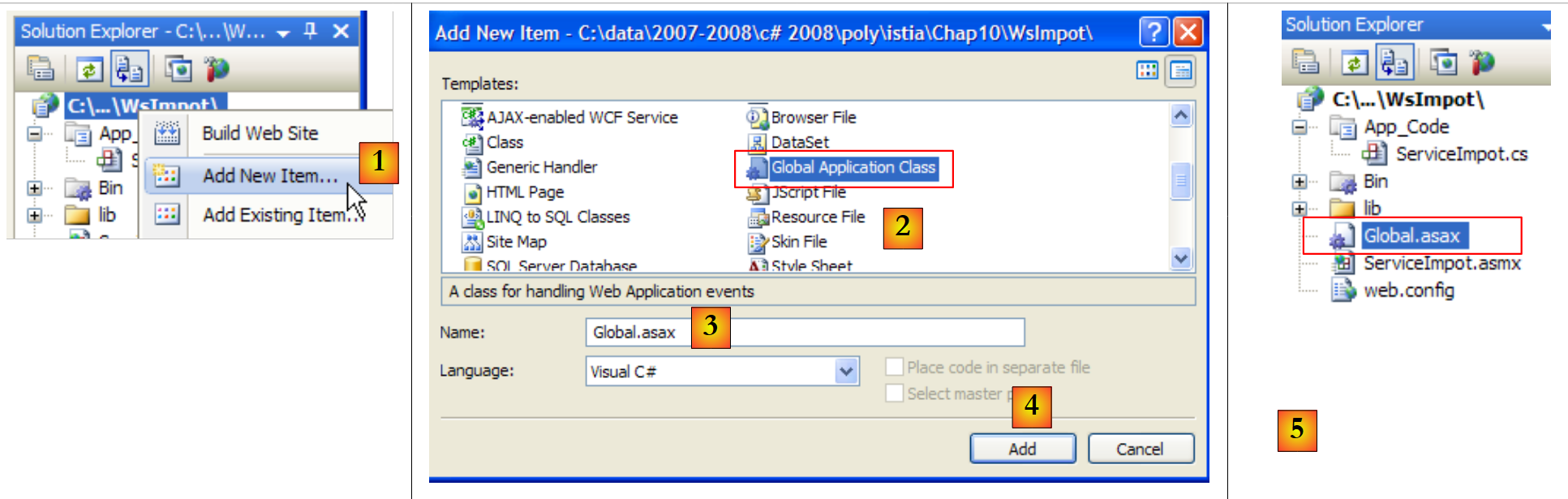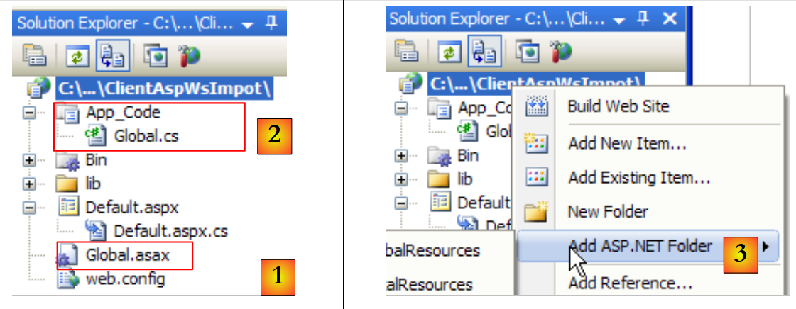 - in [2], the associated [Global.cs] code. The [App_Code] folder containing this file is not present by default in the web solution. Use [3] to create it.