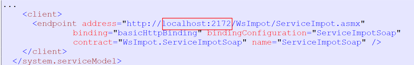 Once this is done, verify that the port for the remote web service is correct in the web client’s [web.config] file: