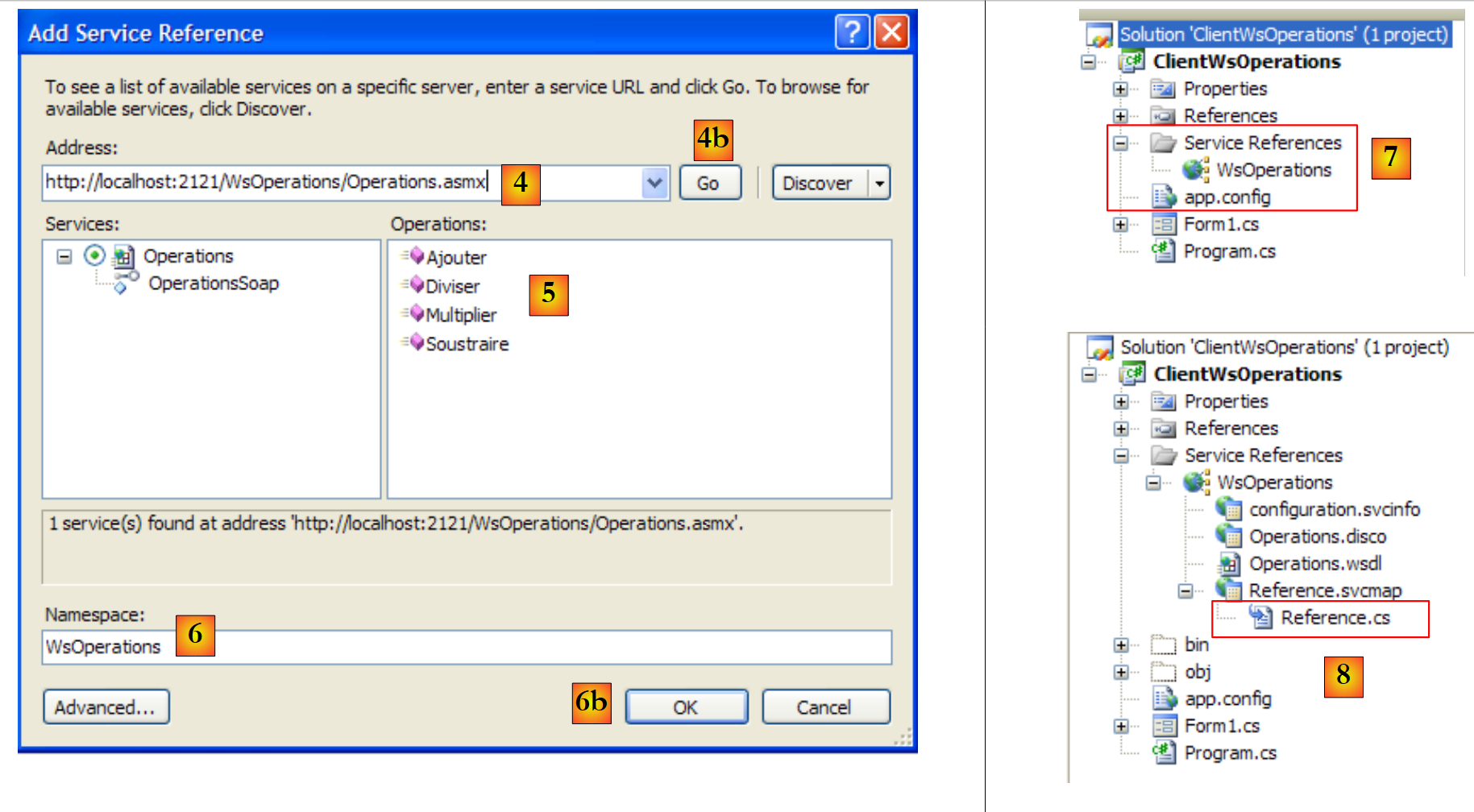 This service will be placed in a new Web Developer project called WsImpotsSansAccents. The web service will then have the URL [/WsImpotSansAccents/ServiceImpot.asmx].