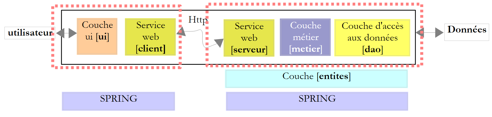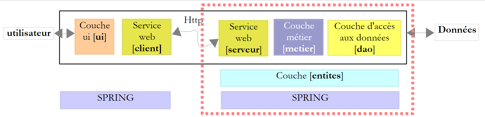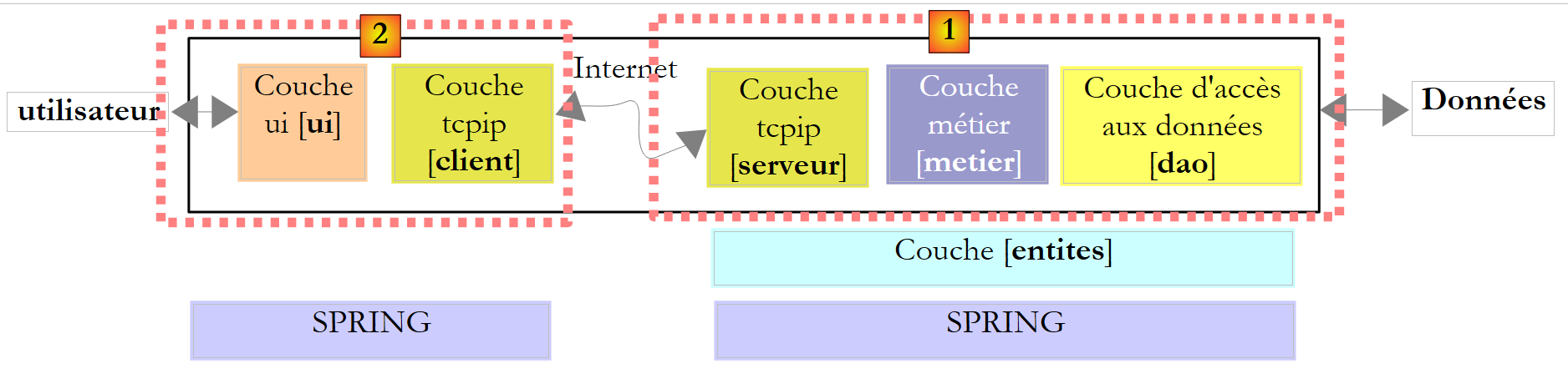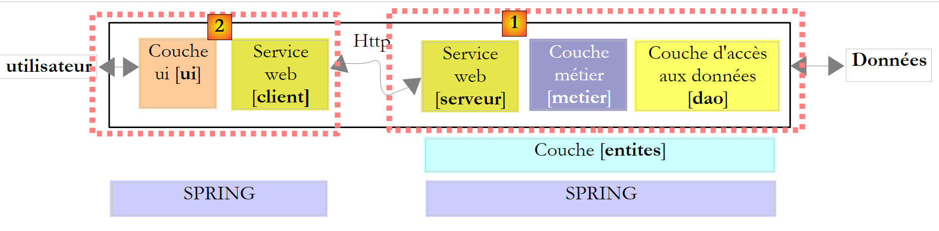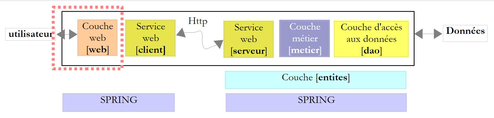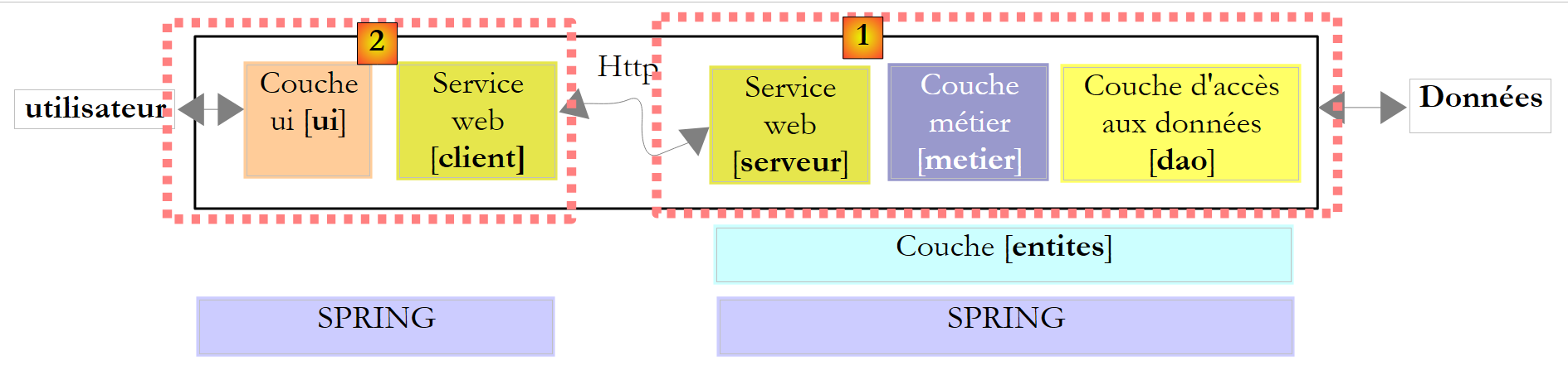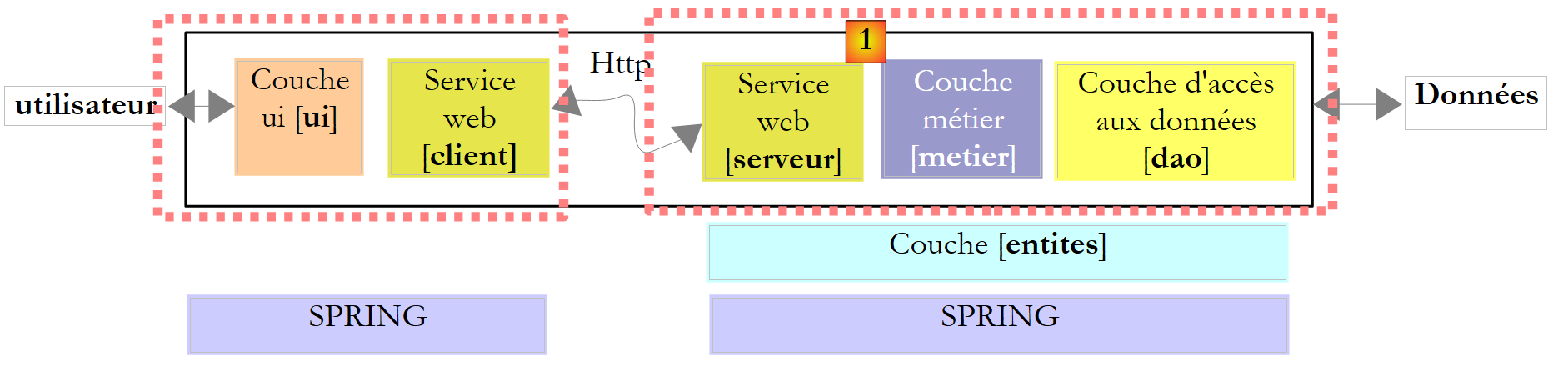 - Line 15: We instantiate the [business] layer (layer [3] of the application under construction) using Spring and the following configuration in [web.config]: