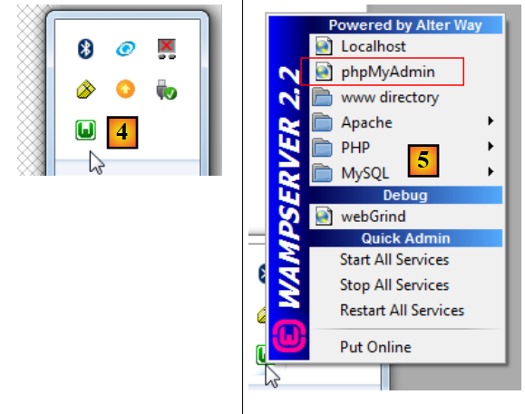- in [4], the [WampServer] icon appears in the taskbar at the bottom right of the screen [4],