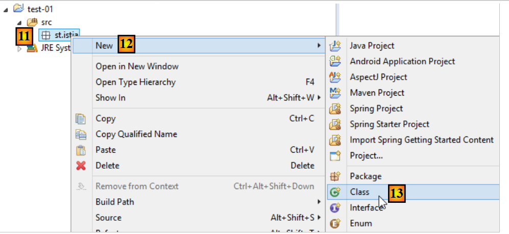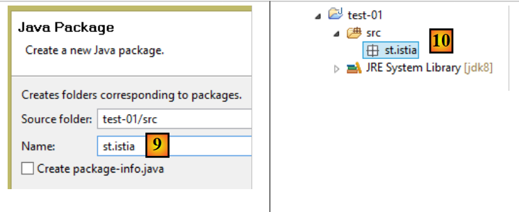 - in [11-13], create a class within the package that was created;