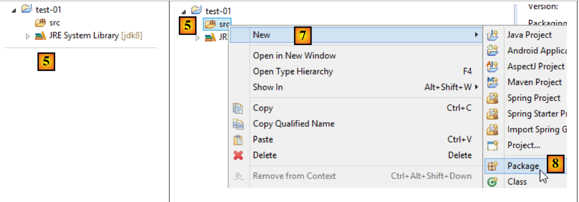 - in [5-8], create a package. A package is a folder that contains Java code. Two classes can have the same name if they belong to different packages. Within a project, there cannot be two packages with the same name. Therefore, you cannot use a package name that already exists in one of the project’s dependencies. A company will use a package name that specifies the company, the project, and its various branches;