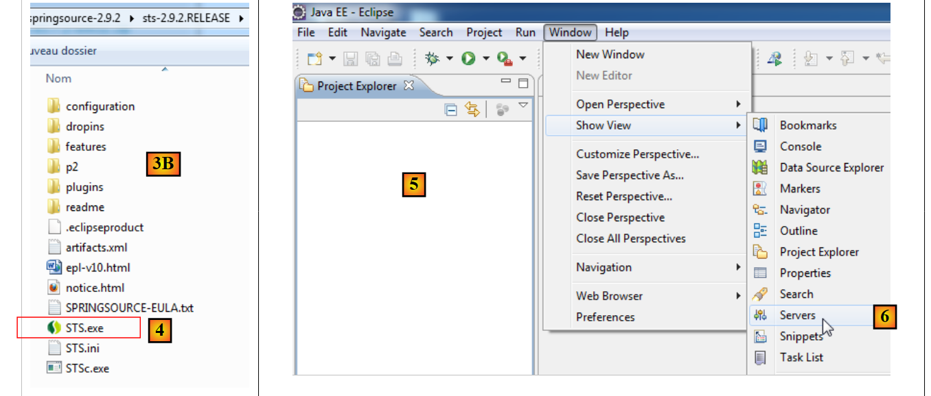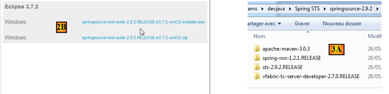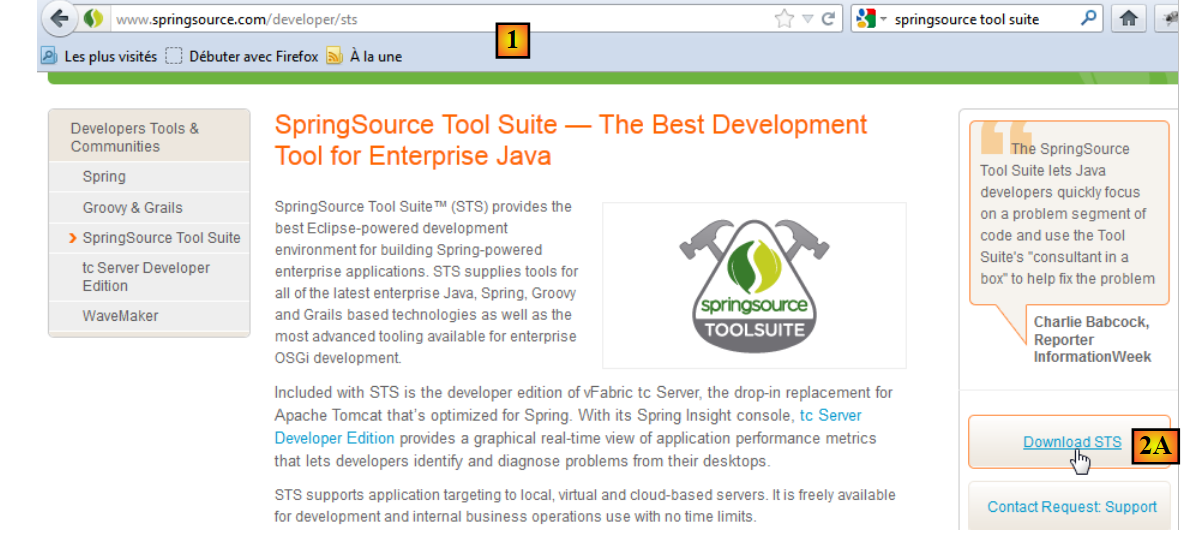 - Go to the SpringSource Tool Suite (STS) website [1] to download the current version of STS [2A] [2B].