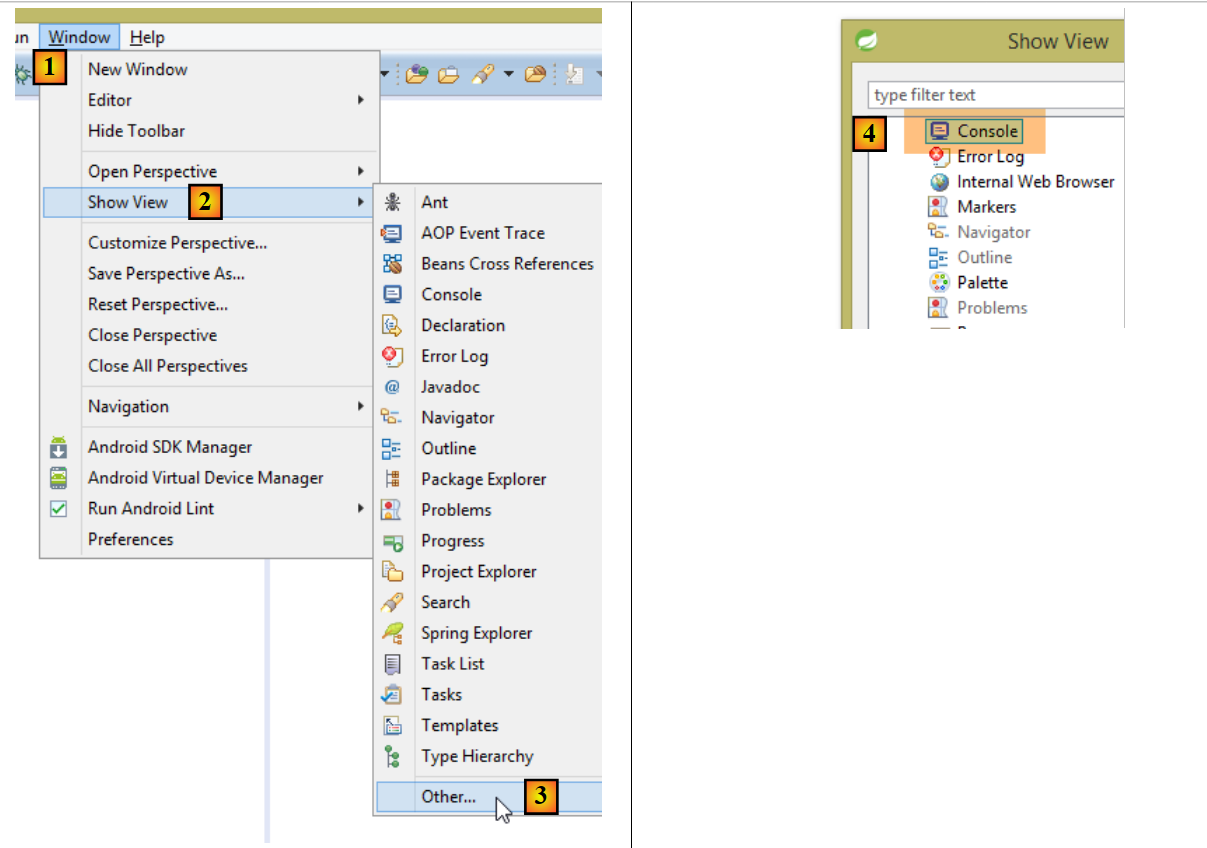 If the [Console] view is not present, proceed as follows [1-4]: