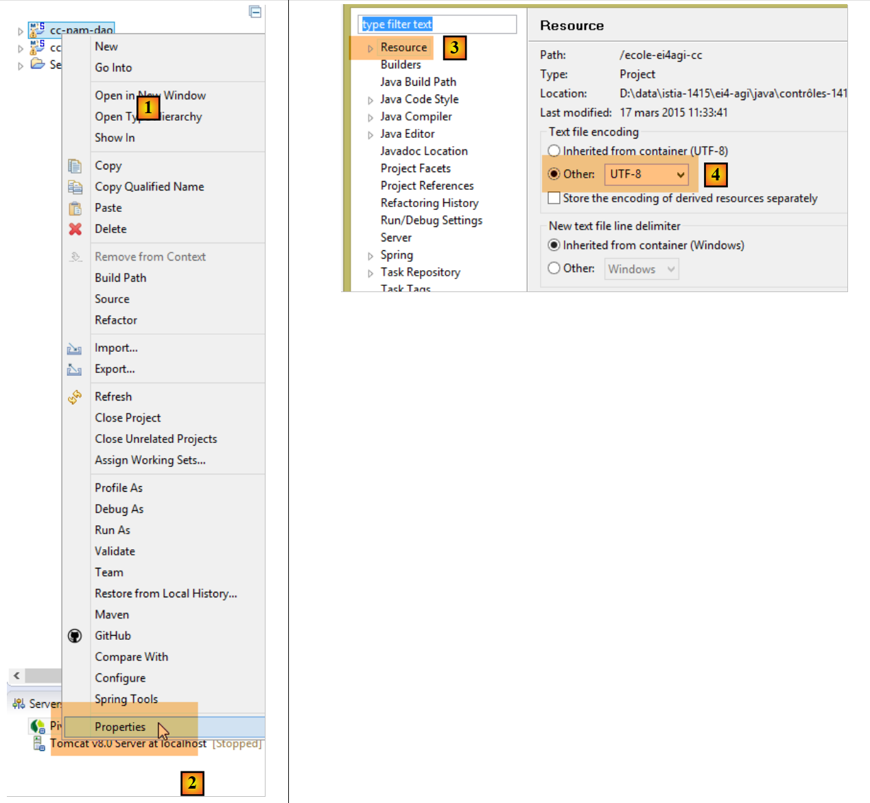 Additionally, the imported project can use UTF-8 character encoding. Follow these steps to set this encoding in the imported project [1-4]: