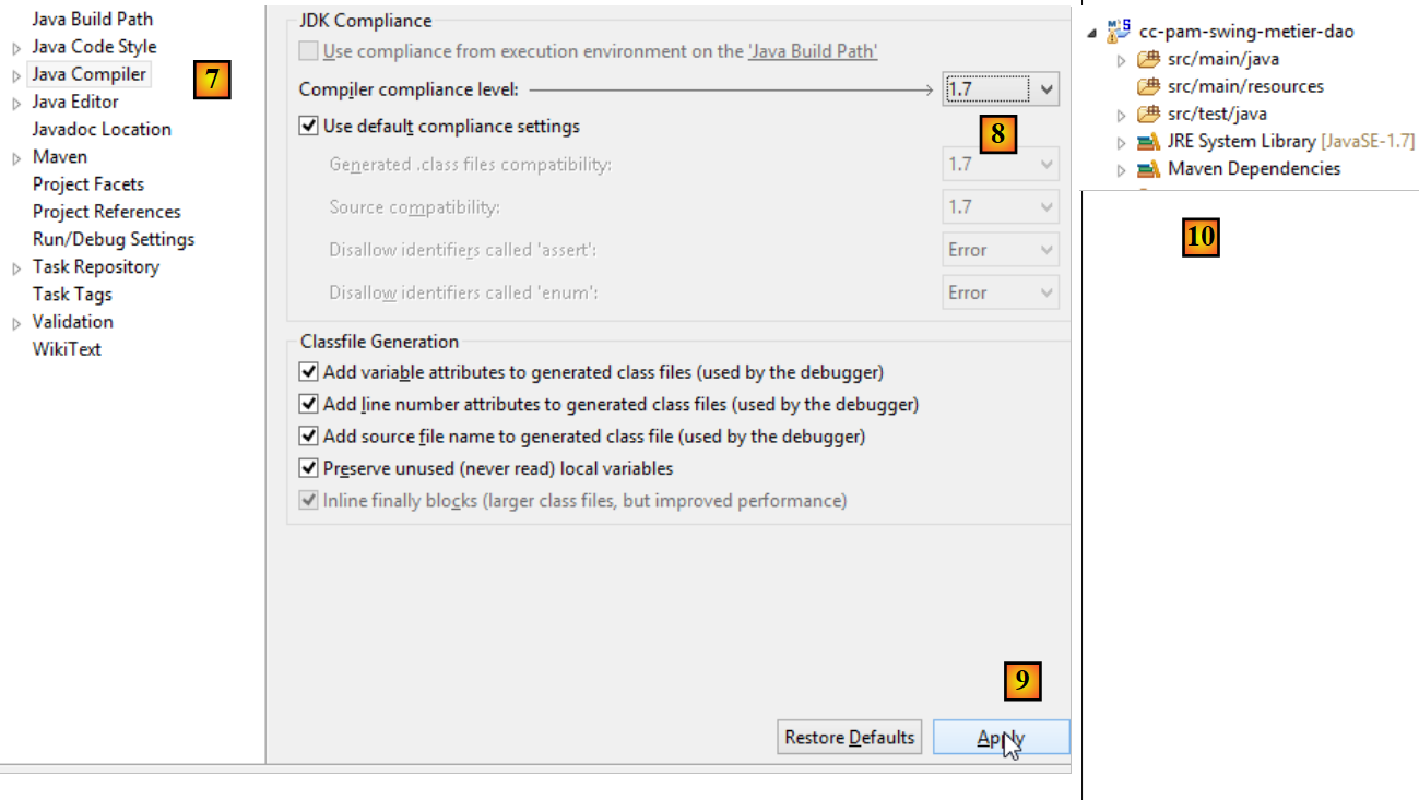 Once this is done, save the changes and then go to the [Java compiler] property of the project [7]: