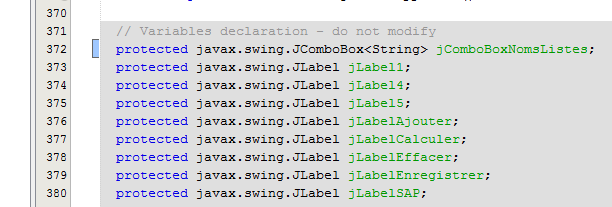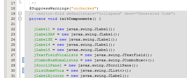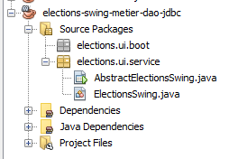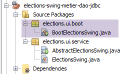 When a component is dropped and configured on the graphical interface and you save (Ctrl-S) your work, code is generated in the [AbstractElectionsSwing] class: