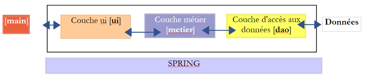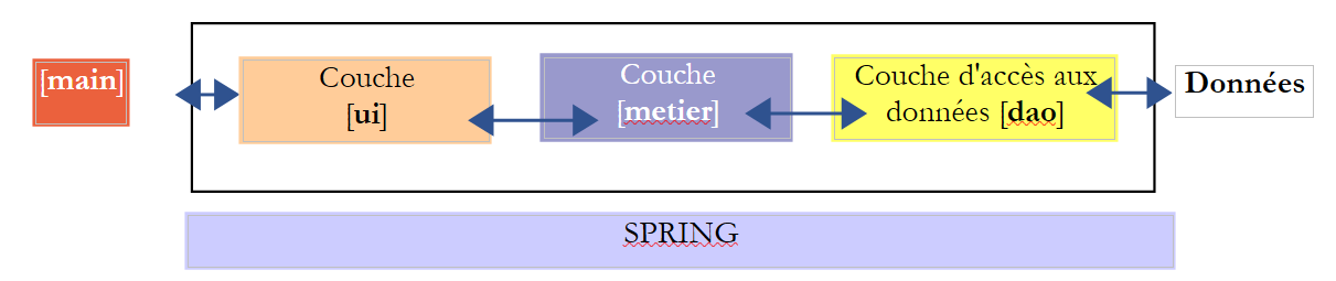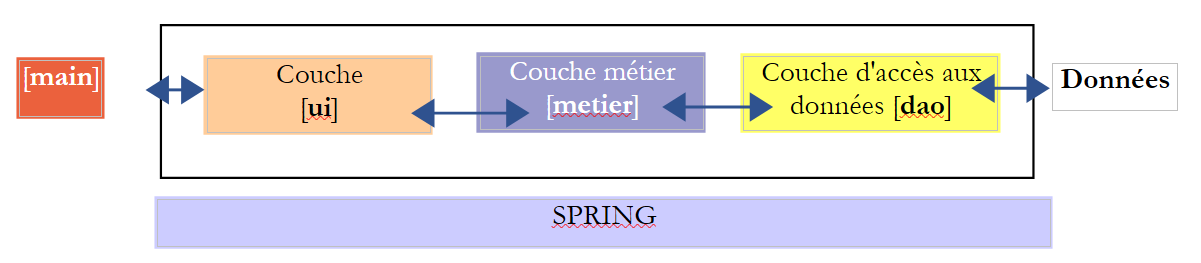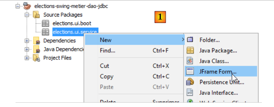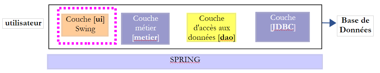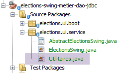 In the [UI] layer, we want to build a Swing GUI. NetBeans has a [Matisse] tool for building these Swing interfaces that is superior to what Eclipse offers. Swing interfaces are increasingly being replaced by JavaFX interfaces. NetBeans and Eclipse use the same tool to build the latter. Therefore, if we build JavaFX interfaces, we can use Eclipse throughout the entire layered architecture.