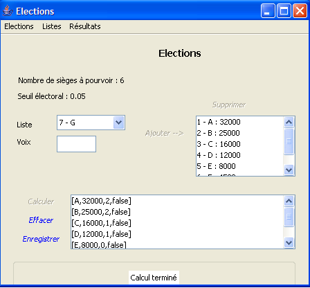 The previous graphical interface can be improved in various ways: the user might forget to enter the votes for all the lists present in the combo box, and they might also accidentally enter the votes for the same list multiple times.