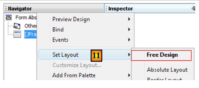 - [11]: [JFrame] is a component container. Components can be arranged within the container according to various positioning rules called layouts. Here, we choose the [Free Design] layout [14], which allows components to be positioned freely within the container.