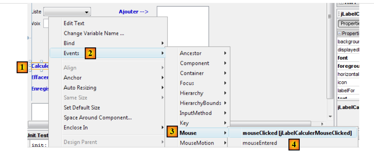 - Lines 1–5: An event handler is added to the jLabelCalculer component. The addMouseListener method expects as a parameter a class that implements the following MouseListener interface: