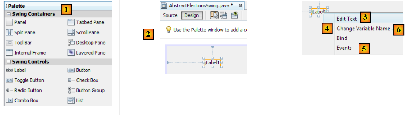 - [2]: A JLabel component is dropped into the component container