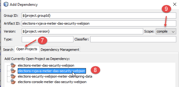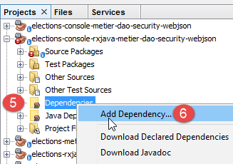 We duplicate this project [1] (copy/paste) into a new project [elections-rxjava-business-dao-security-webjson] [2].