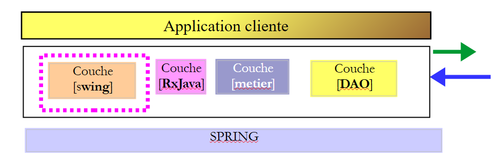 - In [1], we insert an [RxJava] layer between the [Swing] layer and the [business logic] layer. The methods in the latter will now be called asynchronously;