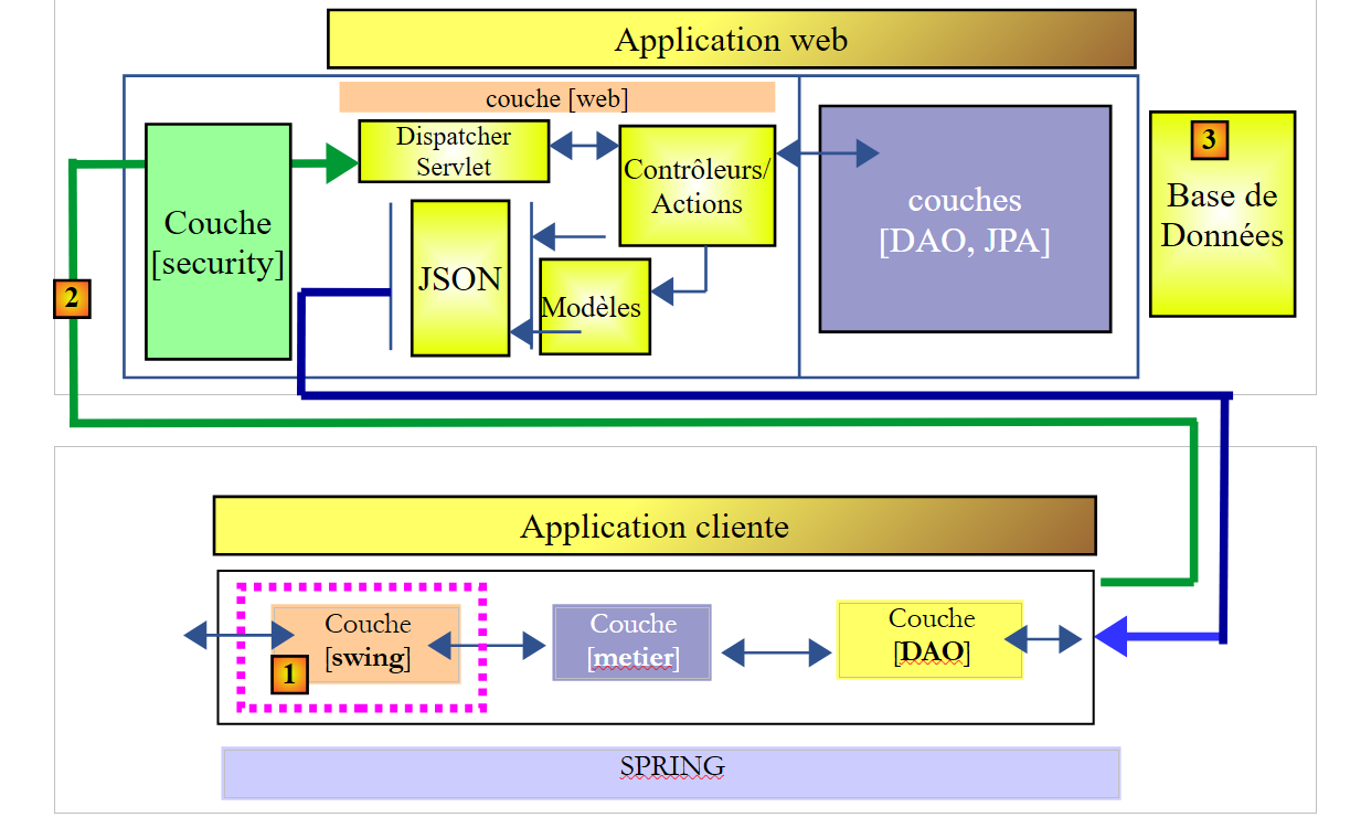 Certain user actions on the Swing interface in [1] trigger actions all the way to the database in [3] via an HTTP network [2]. Because of this, the response to the user’s action may take more or less time to arrive. It would be helpful to include a loading indicator on the user interface with an option to cancel the initiated operation if it takes too long. In Chapter 17.6, every user action requiring data exchange with the server is synchronous. The event handler executed by the code does not complete until the response is received. During this time, the graphical interface is frozen: it does not respond to new user actions. These are simply queued to be processed once the currently running event handler has finished. Thus, if a cancel button were displayed, the user could click it, but nothing would happen until the current operation was finished. The cancel button would then serve no purpose.