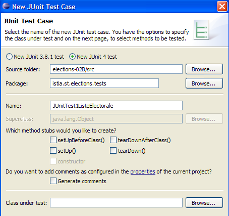 Let’s create a JUnit 4 test, named [JUnitTest1VoterList], for the [VoterList] class. In Eclipse, we’ll proceed as described earlier: