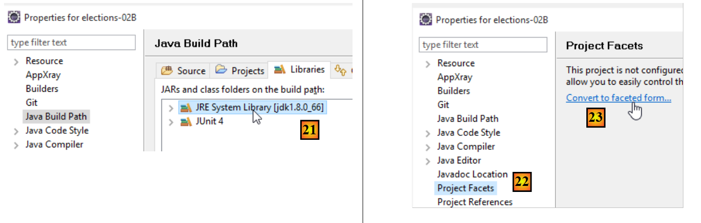 - in [22-23], access the facets (different views of the same Eclipse project) of the project;