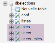 The secure server database must now contain the [USERS], [ROLES], and [USERS_ROLES] tables: