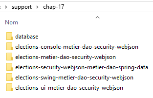 The projects for this chapter can be found in the [support / chap-17] folder. The SQL script is used to generate the database required for testing.
