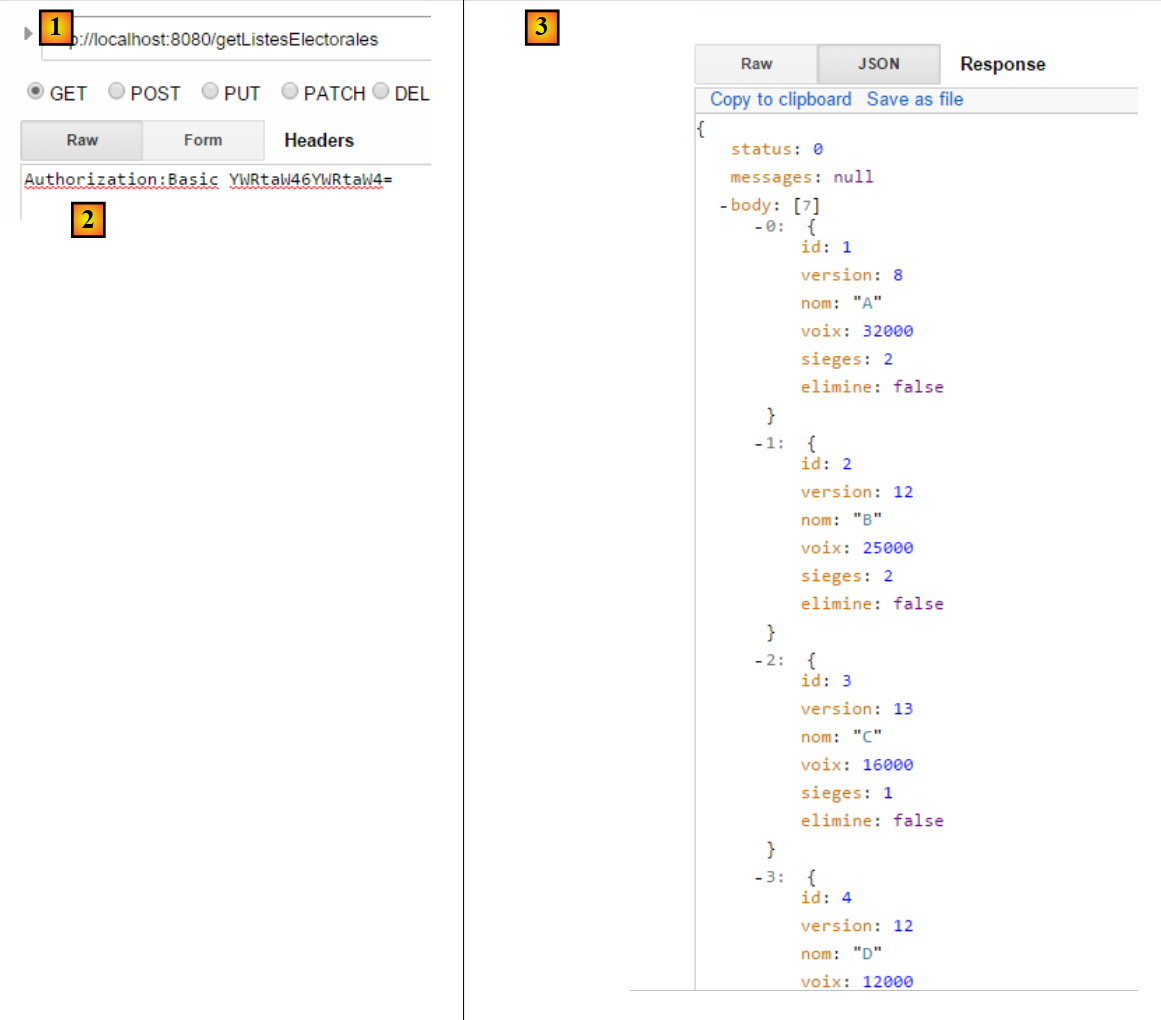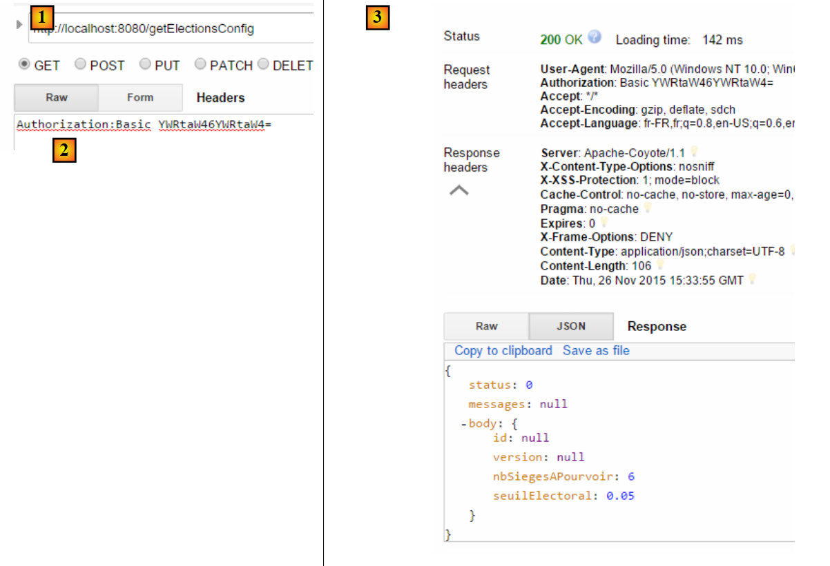 In [1], the request. In [3], the response. In [2], the HTTP header is the user authentication header [admin, admin]: Authorization:Basic YWRtaW46YWRtaW4=