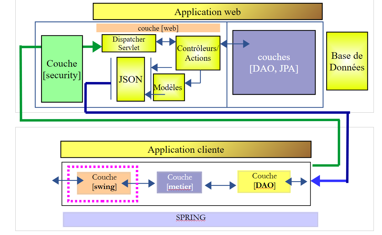 Keywords: multi-tier architecture, Spring, dependency injection, secure web service / JSON, client / server