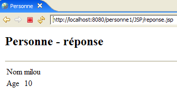 - lines 35-38: if the two retrieved parameters "txtNom" and "txtAge" have valid values, the [reponse(nom,age)] view is displayed. Recall the template for the [reponse] view:
