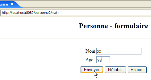 Start or restart Tomcat. Request the URL [http://localhost:8080/personne2] and then repeat the tests shown in the example in section 6.1.