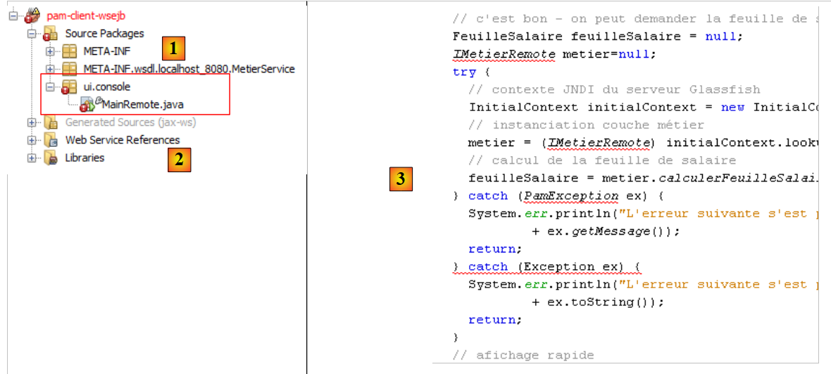 All that remains is to write the client for the Metier web service. We copy the [MainRemote] class from the [mv-pam-client-metier-dao-jpa-eclipselink] project—which was a client of an EJB server—into the new project.