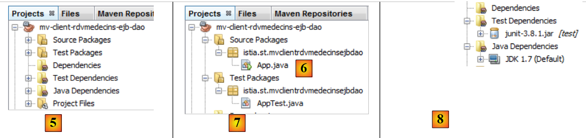 - in [2], we select the [DAO] layer’s EJB project and run it [3],