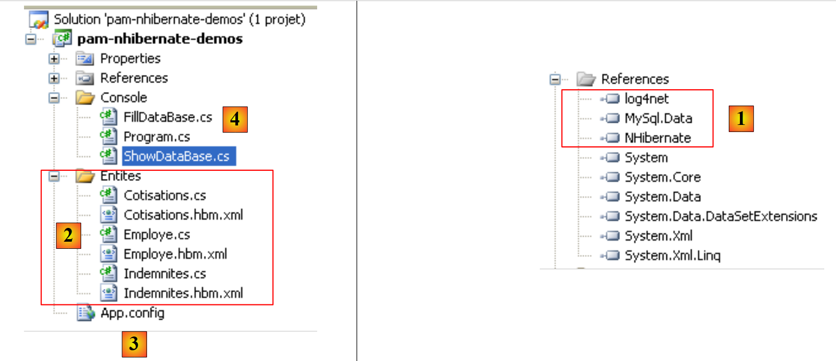 - in [3], the [App.config] file that configures the entire application, including the [NHibernate] framework