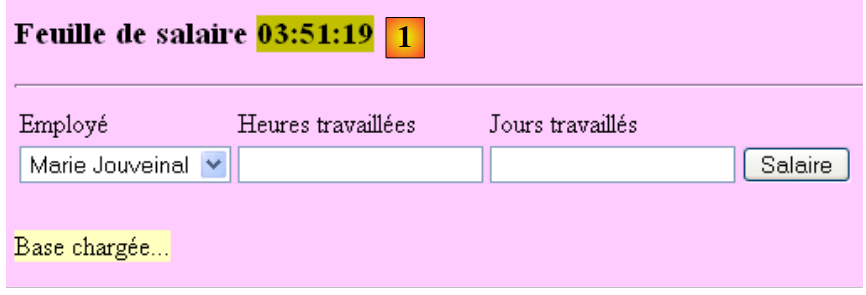 - 2E: A Label named LabelHeureSalaire that will display the time at which the Click event handler for the [Salaire] button is executed. We want to demonstrate that Ajax does not reload the entire page when the [Salaire] button is clicked. This is shown in the previous screenshot, where two different times can be seen in the two Labels.