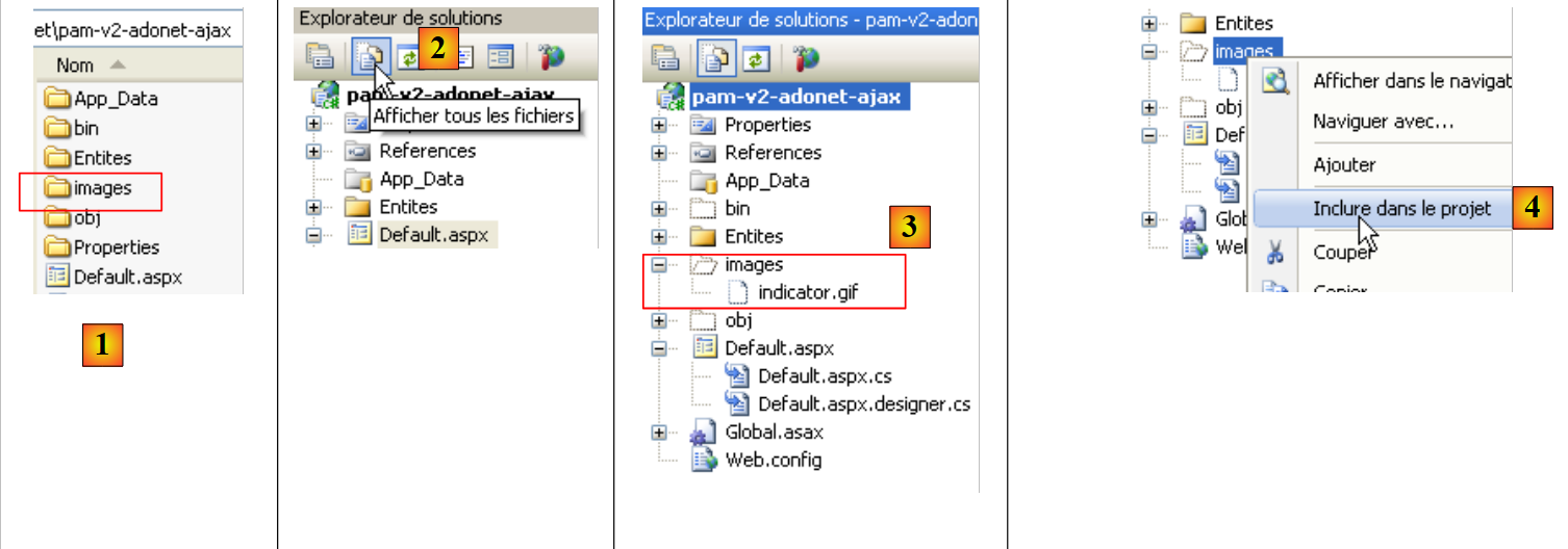 Using Windows Explorer, we add the file [images/indicator.gif] to the project folder [1]: