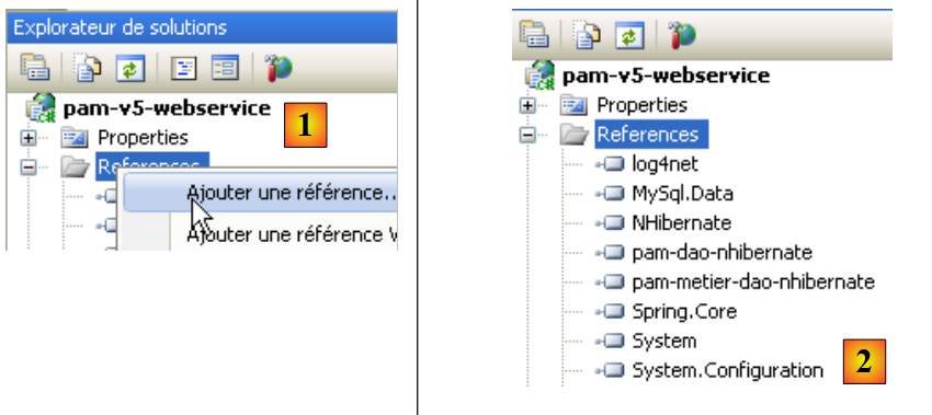 - in [2], we select the usual DLLs from the [lib] folder. We will ensure that their "Copy to Local" property is set to True. The selected DLLs are those that implement the [business] and [DAO] layers with NHibernate support.