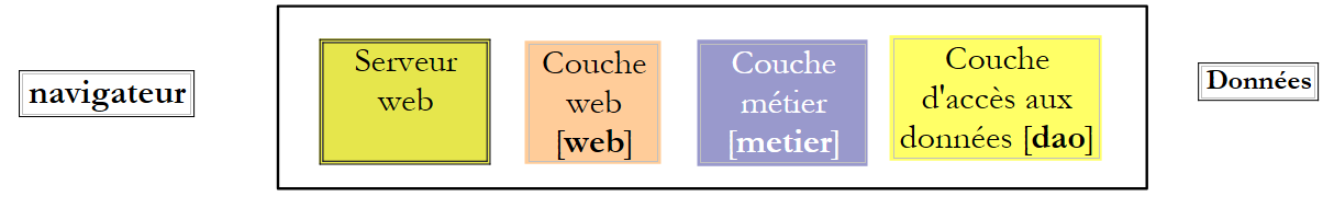 - The [web] layer continues to communicate with the [business] layer as if it were local. To achieve this, the client layer [C] implements the IPamMetier interface of the actual [business] layer and presents itself to the [web] layer as a local [business] layer. Apart from the namespace issue mentioned earlier, the [web] layer remains unchanged. This is the advantage of working in layers. If we had built a single-layer application, it would require a major overhaul.