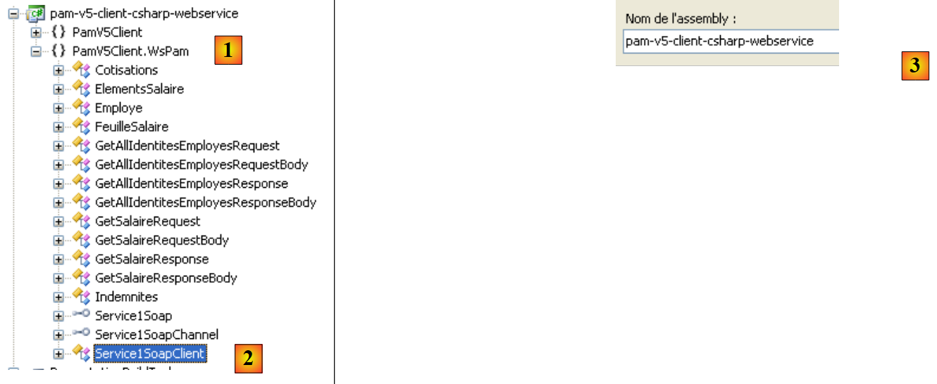 - in [2], in the Object Explorer, the classes and interfaces of the Client.WsPam namespace are displayed. This is the namespace of the generated client.