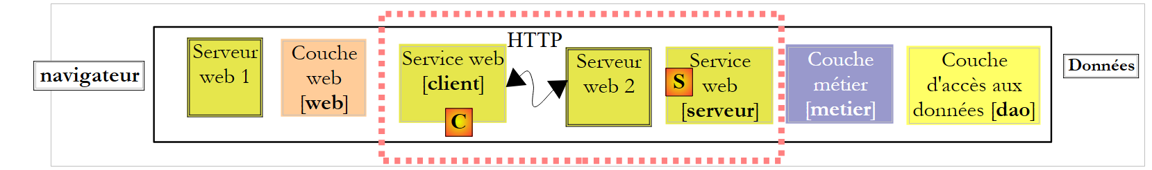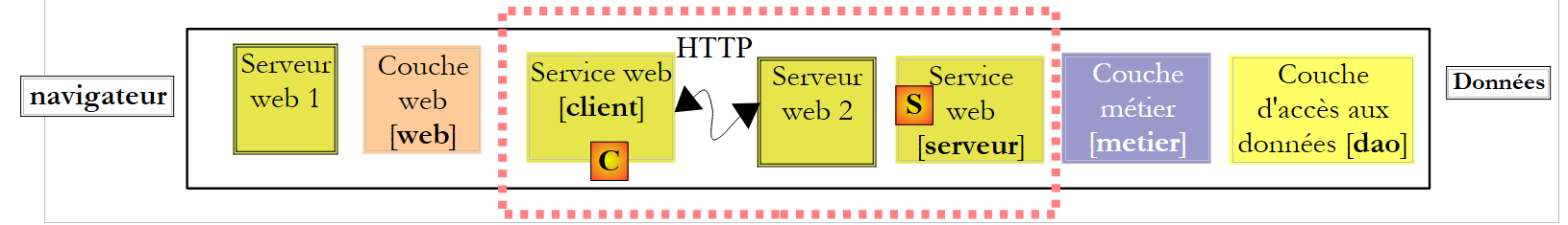 - the [S] layer, which will be a web service. The web service receives requests from remote clients and uses the [business] and [DAO] layers to fulfill them. There are many ways to build a TCP/IP service. The advantage of the web service is twofold: