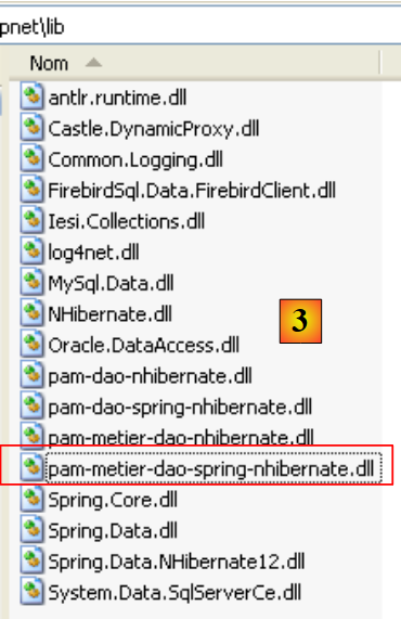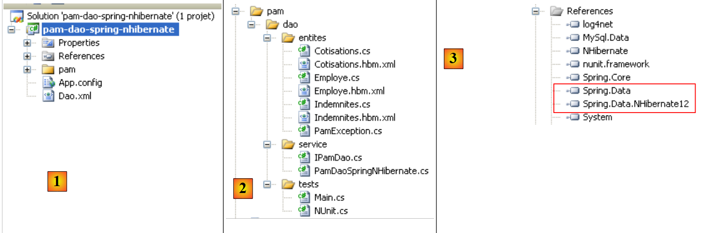 - In [3], the references used by the project. Note the [pam-dao-spring-nhibernate] DLL from the [dao] layer discussed previously.