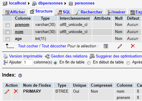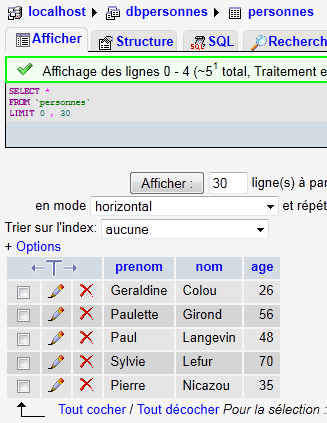 - a MySQL database [dbpersonnes]