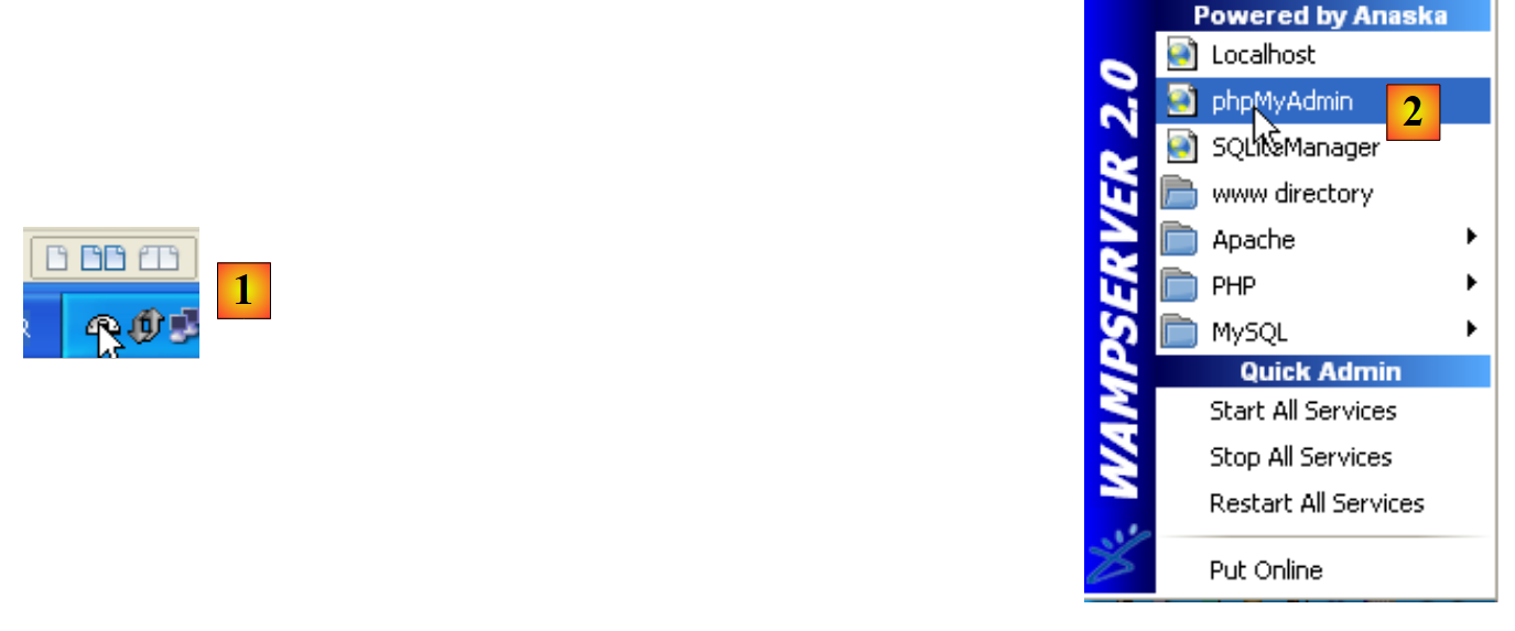 - Once launched, WampServer can be managed via an icon [1] located at the bottom right of the taskbar.