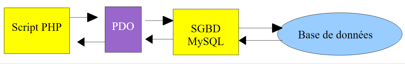 We will write PHP scripts to work with the database. PHP has various libraries for managing databases. We will use the PDO (PHP Data Objects) library, which acts as an interface between the PHP code and the DBMS: