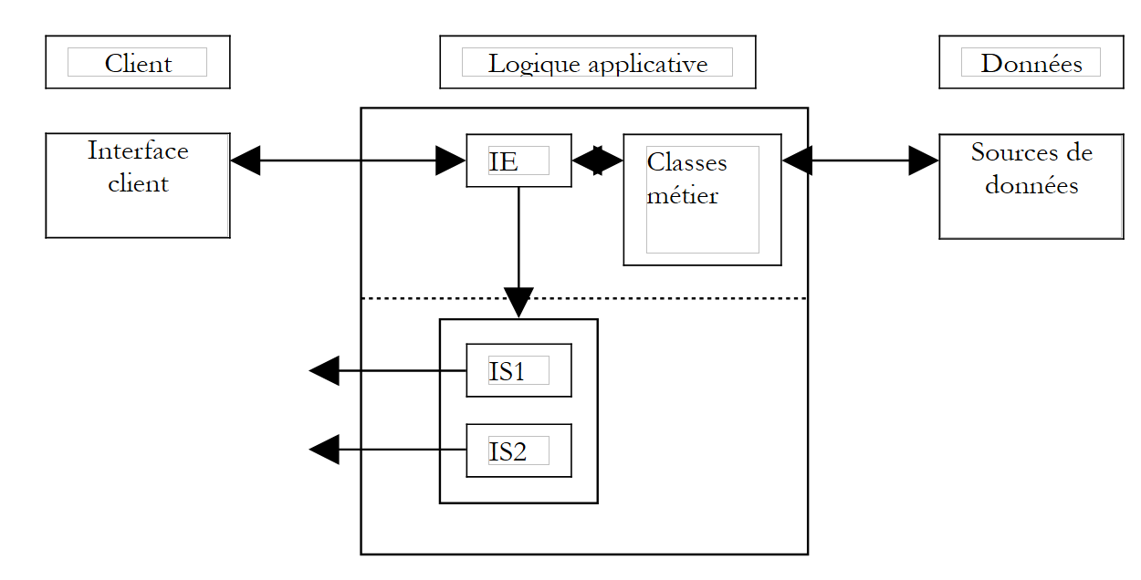 - the block of response page generators [IS1 IS2 ... IS=Output Interface]. Each generator is responsible for formatting the results provided by the application logic for a given client type: HTML code for a browser or a WAP phone, XML code for a standalone application, ...