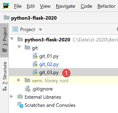 - in [8-9], the contents of the [.gitignore] file: a single line with the name of the [/venv] folder, indicating that its contents should be ignored in the snapshots;