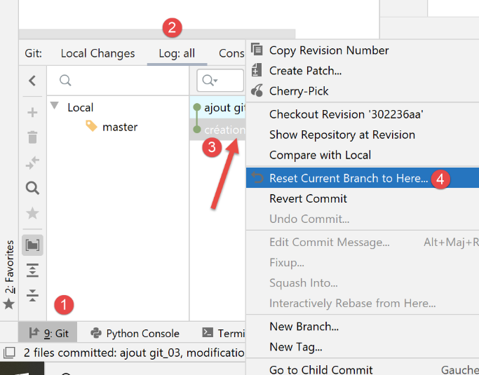 - in [3], the [commit] button or project validation button. As mentioned, Git then takes a snapshot of the project and stores it in a [.git] folder at the project root (not displayed by PyCharm but visible in Windows Explorer);