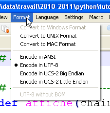 - line 1: a special comment used to declare the script's encoding type, here UTF-8. This depends on the text editor used. Here with Notepad++:
