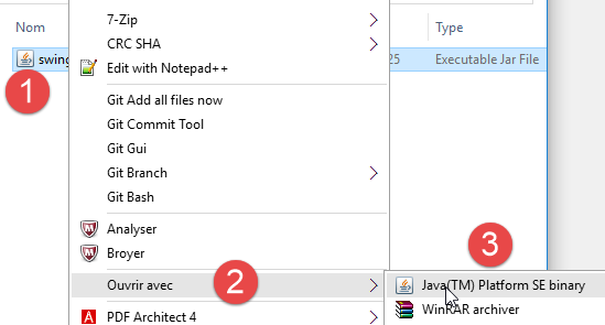 There are various ways to run the [swing-01] archive depending on the configuration of the machine used to run it. For example, you can follow the process [1-3]. This will display the following graphical user interface: