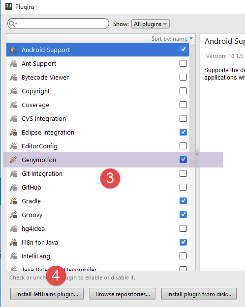 - In [3-4], add the [Genymotion] plugin to the IDE;