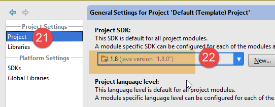 - In [21-22], specify the default JDK for projects;