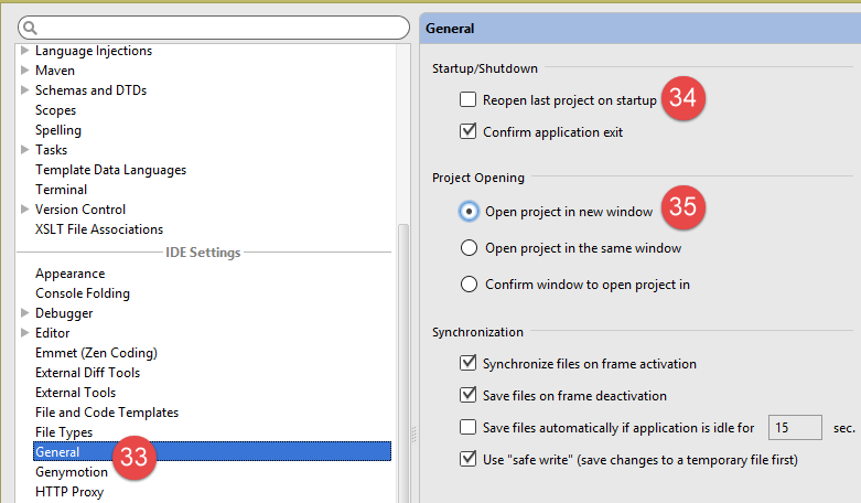 - In [33-35], configure the IDE for multiple projects. It can manage several projects in the same window or in different windows;
