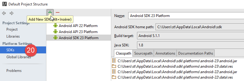 - In [17-20], configure the Android SDK;
